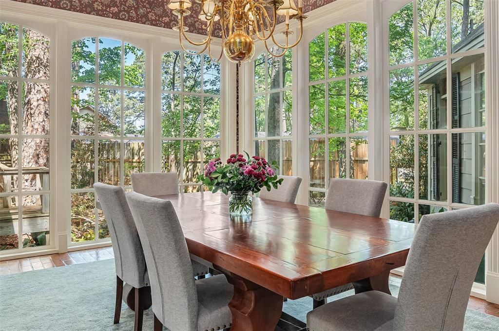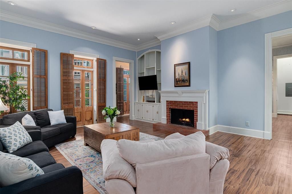 Tucked behind a private gated entrance, this stunning New Orleans-style estate feels like your own hidden oasis right in the heart of town. Surrounded by lush landscaping, courtyards, and winding flagstone pathways, every detail invites you to slow down and stay awhile. Inside, soaring 12-foot ceilings and floor-to-ceiling windows flood the home with natural light and frame beautiful views of the surrounding patios and gardens. Rich character shines through reclaimed mahogany and pine doors, antique brass hardware, and a hand-plastered ceiling in the formal dining room. The layout offers a spacious living room, and an open kitchen with a cozy hearth area and breakfast nook, and a formal dining space that feels like dining in the treetops. Each bedroom features its own private bath, offering comfort and privacy for all. The newly renovated 483 sq ft guest house includes a kitchenette, full bath, and private balcony - perfect for guest, a MIL suite, or income potential. Additional highlights include an electric gate, a workshop, outdoor brick fireplace with a seating area, custom closets, abundant storage, and a spacious utility room. Schedule your private showing today and experience this one-of-a-kind property for yourself.